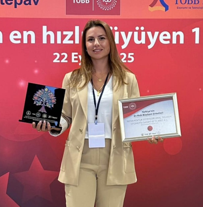 2025 yılında gerçekleşen Türkiye 100 Programının dokuzuncusunda listeye giren firmalardan birisi de, koltuk üretimindeki global markamız İNOVA Otomotiv oldu. İNOVA adına ödülü; Dış Ticaret Müdürü Gizem Kavalcı Kepir aldı. Ödülü Cumhurbaşkanı Yardımcısı Cevdet Yılmaz ve TOBB Genel Başkanı Rıfat Hisarcıklıoğlu’ndan alan Gizem Kavalcı Kepir, şu açıklamayı yaptı: