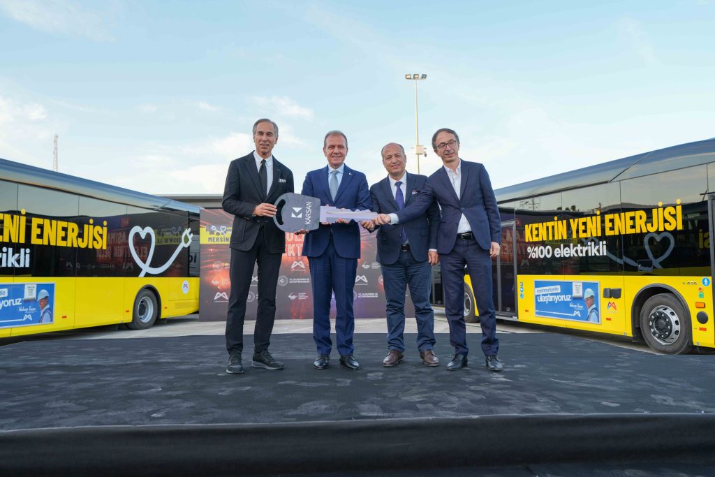 Dünyada toplu ulaşımın elektrikli ve otonom araçlara dönüşümünde öncü rol oynayan Karsan, Türkiye pazarındaki başarısıyla da sektörün zirvesini temsil ediyor. “Mobilitenin Geleceğinde Bir Adım Önde” vizyonuyla çalışmalarını sürdüren Karsan, sürdürülebilir hareketliliğin geleceğini şekillendirme yolunda büyük bir adımı daha hayata geçirdi. Kısa bir süre önce Mersin Büyükşehir Belediyesi’nin düzenlediği ihaleyi kazanan Karsan, bu kapsamda 17 adet 12 metrelik Karsan e-ATA otobüslerinin teslimatını gerçekleştirdi. MEŞOT Toplu Taşıma Yerleşkesi’nde gerçekleştirilen törende, Mersin Büyükşehir Belediye Başkanı Sn. Vahap Seçer’in yanı sıra; AB Türkiye Delegasyonu İş Birliği Bölüm Başkanı Maria Luisa Wyganowski, Ulaştırma Sektörü Yöneticisi Dr. Göktuğ Kara, Ulaştırma ve Altyapı Bakanlığı yetkilileri, Karsan Yurtiçi Satış Genel Müdür Yardımcısı Muzaffer Arpacıoğlu, Satış Sonrası Hizmetler Direktörü Kubilay Dinçer, Satış Müdürü Adem Ali Metin, Satış Yöneticisi Fırat Acar ve çok sayıda vatandaş hazır bulundu.