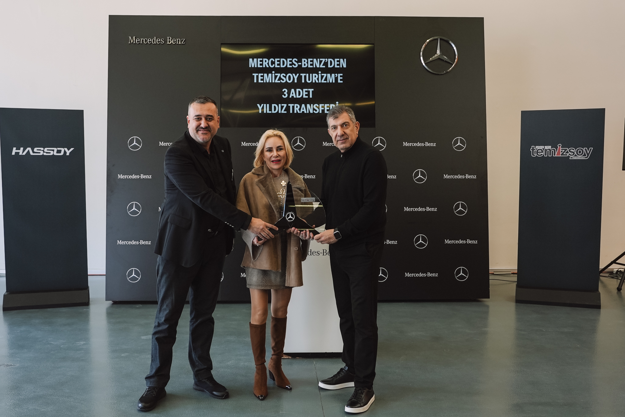 Hassoy Otomotiv Otobüs Satış Müdürü Cenk Soydan ise “Hassoy Otomotiv olarak, Mercedes‑Benz Türk ile uzun yıllardır sürdürdüğümüz güçlü iş birliği kapsamında sektöre güven ve kalite odaklı teslimatlar gerçekleştirmeye devam ediyoruz. Turizm taşımacılığı alanında faaliyet gösteren güçlü firmalardan Temizsoy Turizm’e 3 adet Mercedes-Benz Tourismo 15 2+2 teslim etmekten büyük mutluluk duyuyoruz. Mercedes-Benz Tourismo modellerinin sunduğu ileri güvenlik donanımları, üstün konfor seviyesi ve verimlilik odaklı özellikleriyle Temizsoy Turizm’in operasyonlarına önemli katkılar sağlayacağına yürekten inanıyoruz. Bu değerli iş birliğinin önümüzdeki dönemde de güçlenerek devam edeceğini temenni ediyor, yeni araçlarının Temizsoy Turizm ailesine hayırlı olmasını diliyorum.” dedi